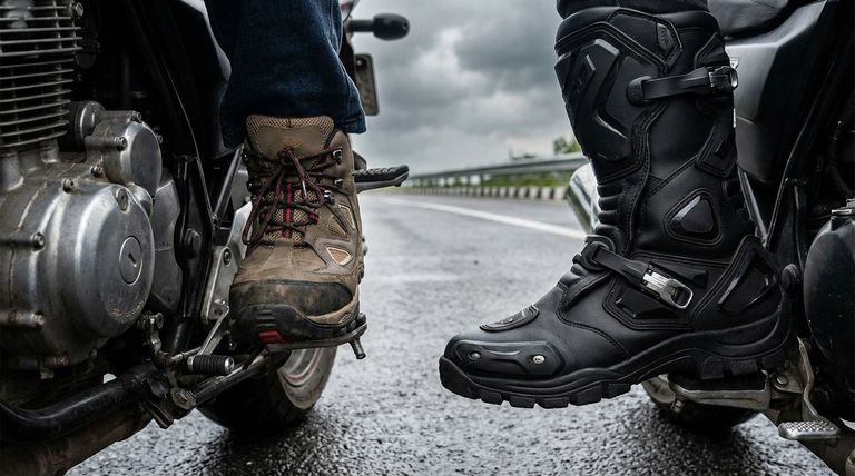 قدماك هما واجهتك الأساسية للتحكم في الدراجة النارية، بخلاف يديك. إنهما تشغلان الفرامل الخلفية وناقل الحركة، وتحملان وزن الدراجة عند التوقف. ضعفهما في الحادث يجعل الحماية المناسبة أمرًا لا يمكن المساومة عليه.