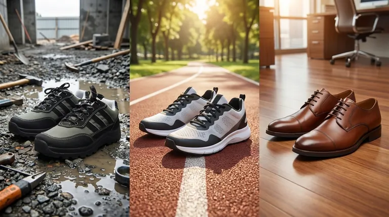 - إذا كان تركيزك الأساسي هو سلامة مكان العمل المتخصصة: اختر حذاءً بمادة نعل، مثل PU أو مطاط الراتنج، مصممة خصيصًا لمقاومة مخاطر بيئتك.